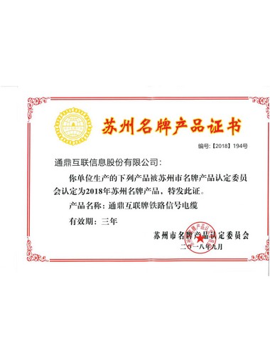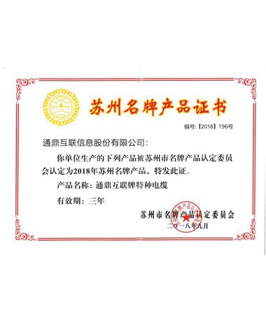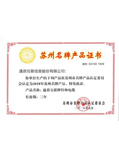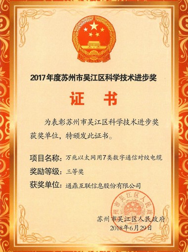 2017年度苏州市吴江区科学手艺前进奖(万兆以太网用7类数字通讯对绞电缆)