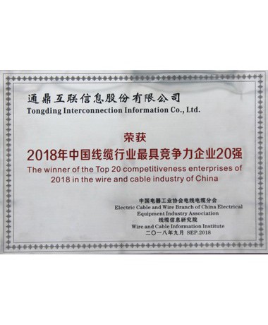 2018年中国线缆行业最具竞争力企业20强