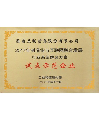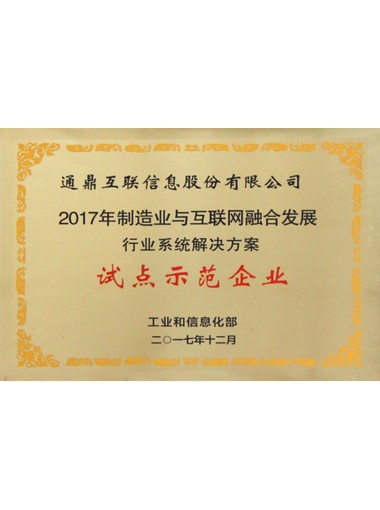 2017年制造业与互联网融合生长试点树模企业