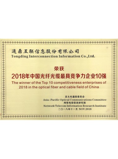 2018年中国光纤光缆最具竞争力企业10强