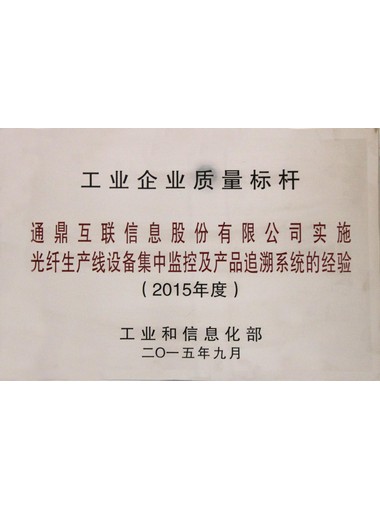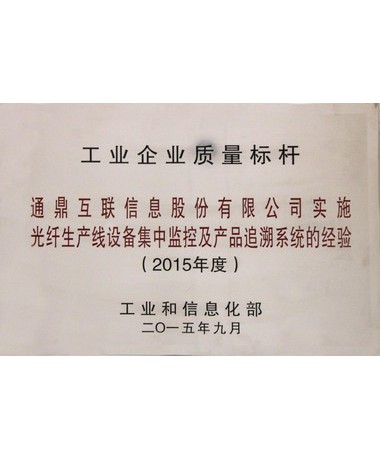工业企业质量标杆(光纤生产线装备集中控制及产品追溯系统的履历)(2015)