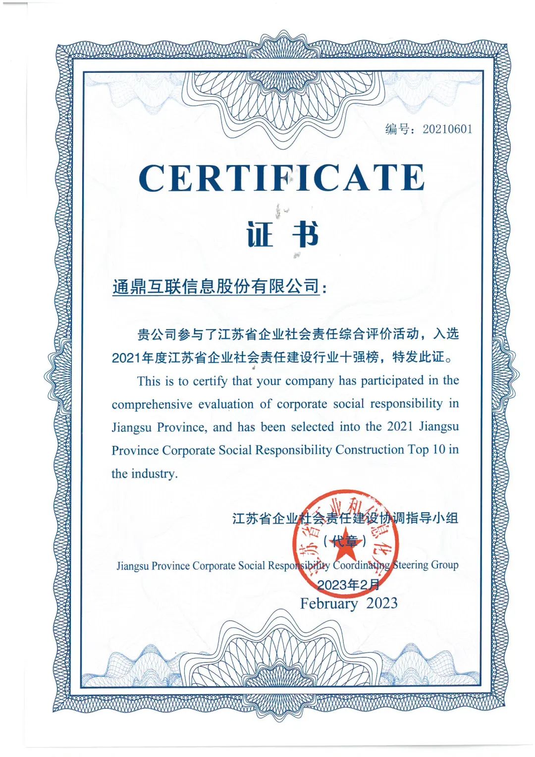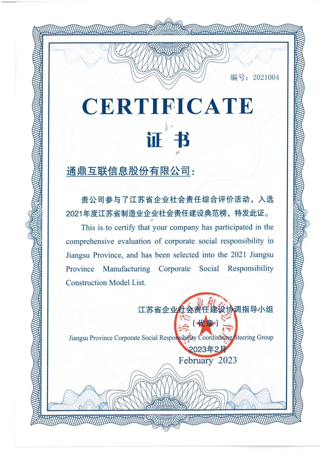 聚会宣布全省制造企业社会责任百强榜,,,,,表扬了十家入围代表并揭晓证书,,,,,beats365互联入选“2021年度江苏省企业社会责任建设行业十强榜”和“2021年度江苏省制造业企业社会责任建设规范榜”。。。。。