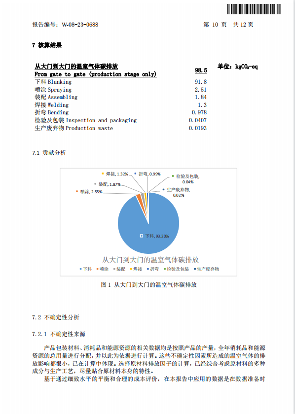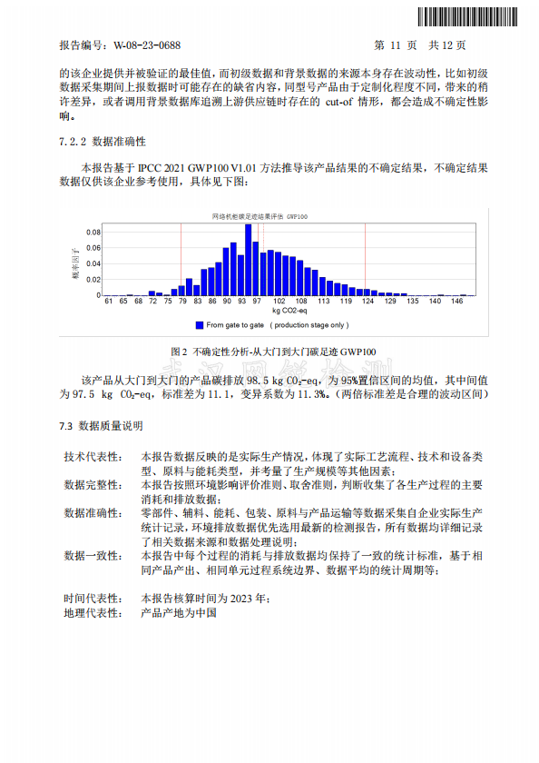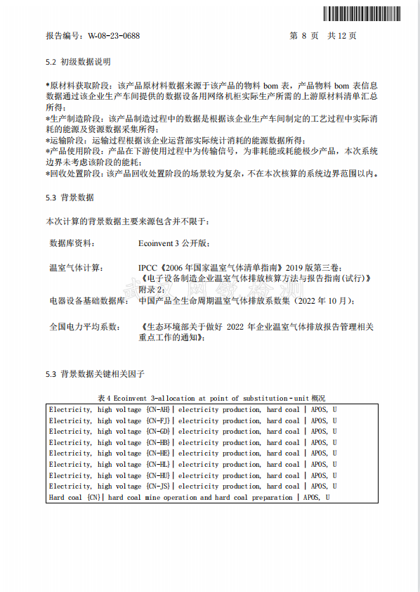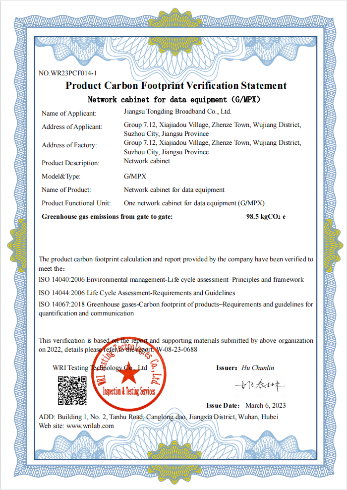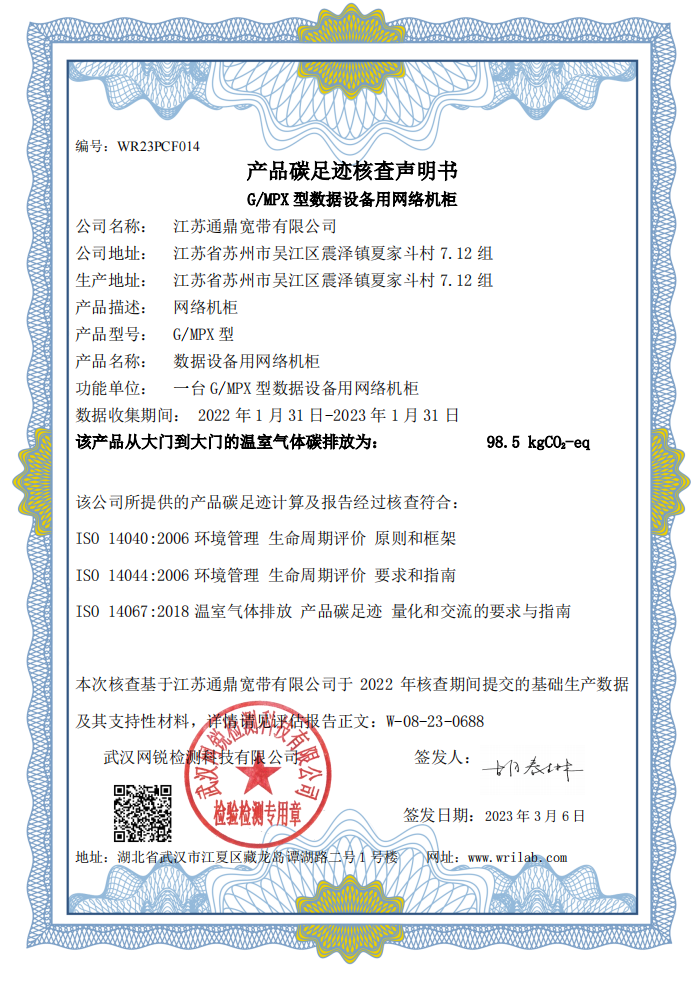G/MPX型数据装备用网络机柜 产品碳足迹检查报告